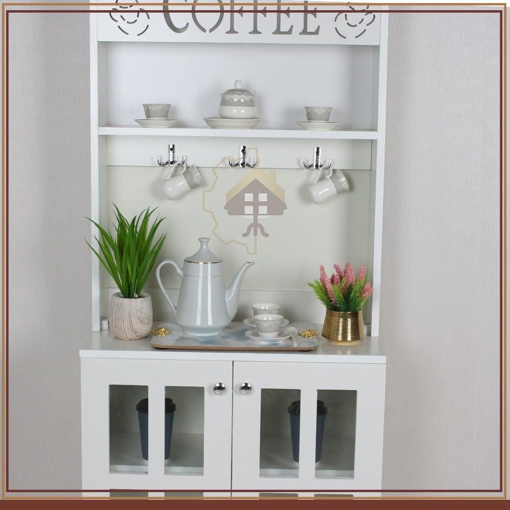 - ركن الكوفي تصميم أنيق بابين زجاج شفاف مع رفوف لون أبيض هو قطعة أثاث أنيقة وعملية يمكن استخدامها في مجموعة متنوعة من الأماكن. فهو مثالي للاستخدام في غرفة المعيشة أو غرفة النوم أو المكتب أو أي مكان آخر يحتاج إلى مساحة إضافية لإعداد القهوة أو الشاي أو المشروبات الأخرى.