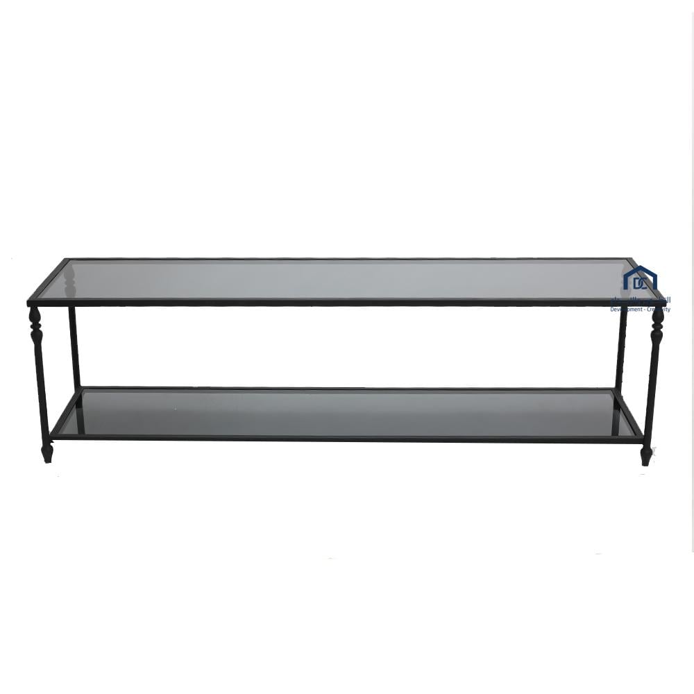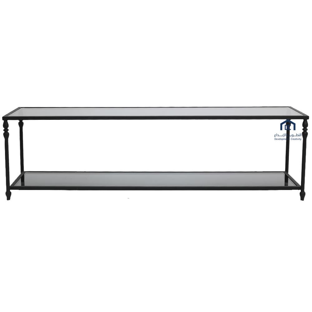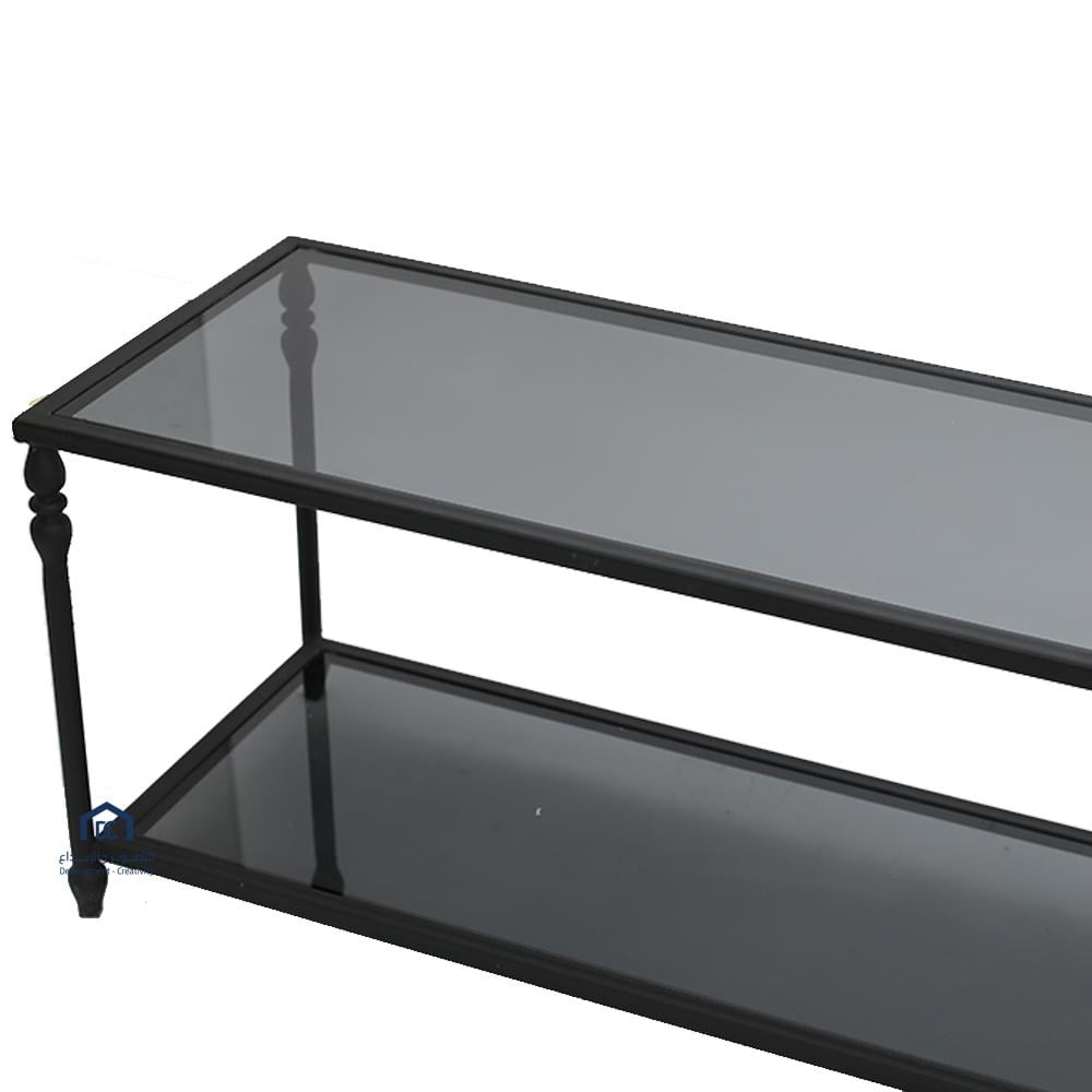 طاولة تلفزيون دورين زجاج اسود قاعدة معدن لون اسود مطفي