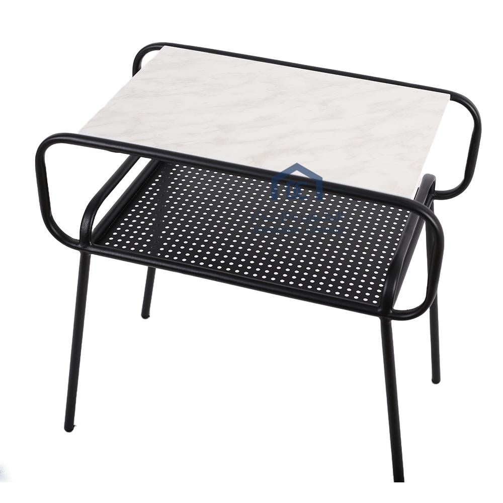 طاولة جانبية رفين ليزر سطح خشب لون ابيضقواعد معدن لون اسود مطفي