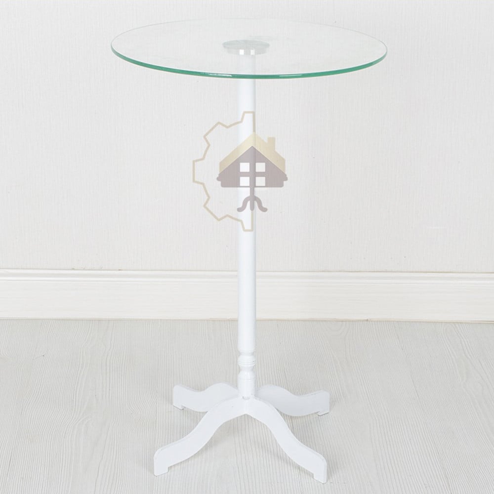 سطح الطاولة مصنوع من زجاج شفاف عالي الجودة، مما يضفي لمسة من الشفافية والانفتاح على التصميم. يسمح الزجاج برؤية قاعدة الطاولة وتفاصيلها بوضوح.