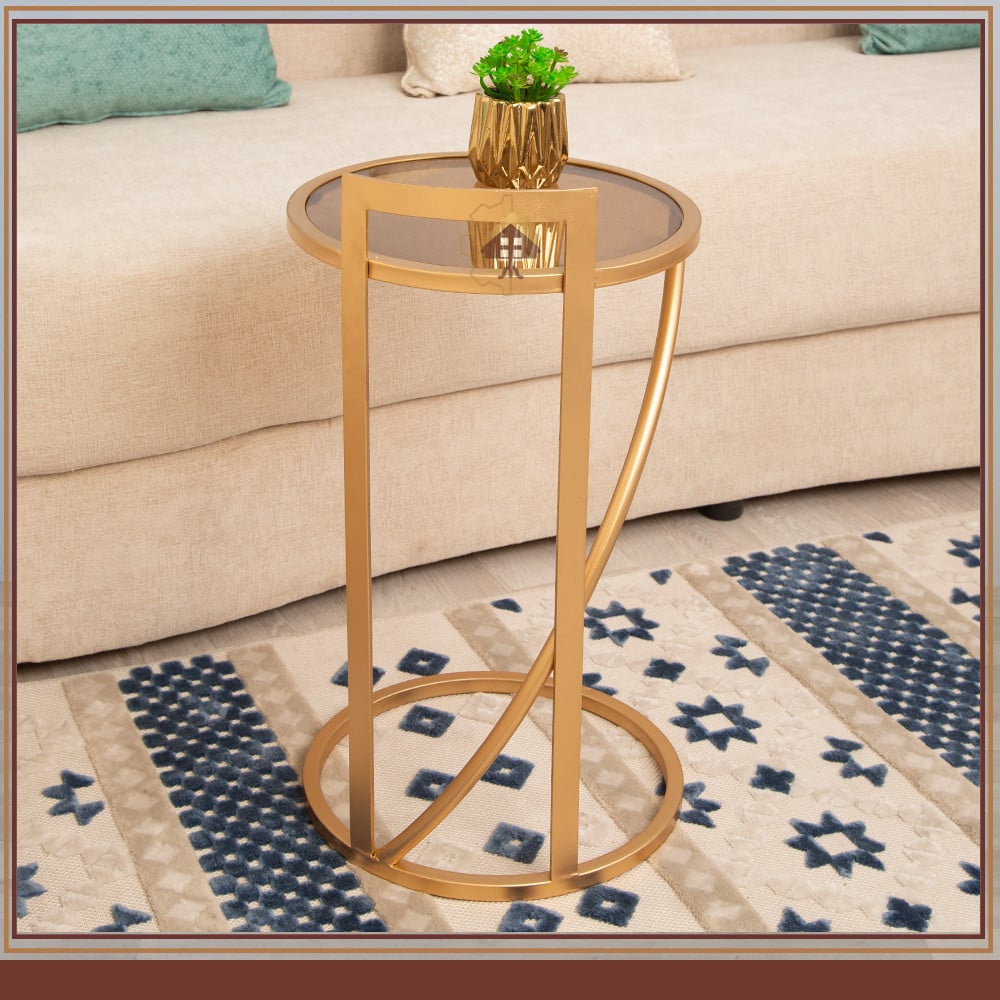 طاولة خدمة القاعدة حديد لون ذهبي والسطح زجاج شفاف تصميم عصري