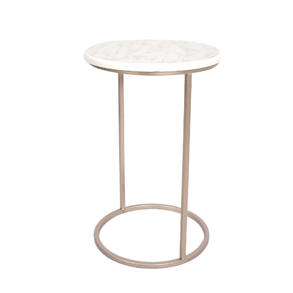 طاولة خدمة دائرية لون شمباني سطح خشب رخامي