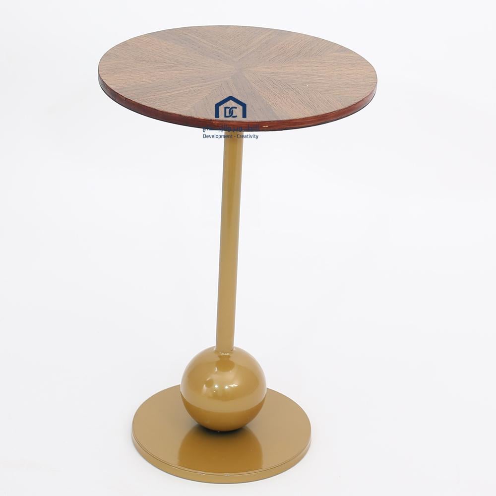 طاولة خدمة دائري لون ذهبي سطح خشب بني