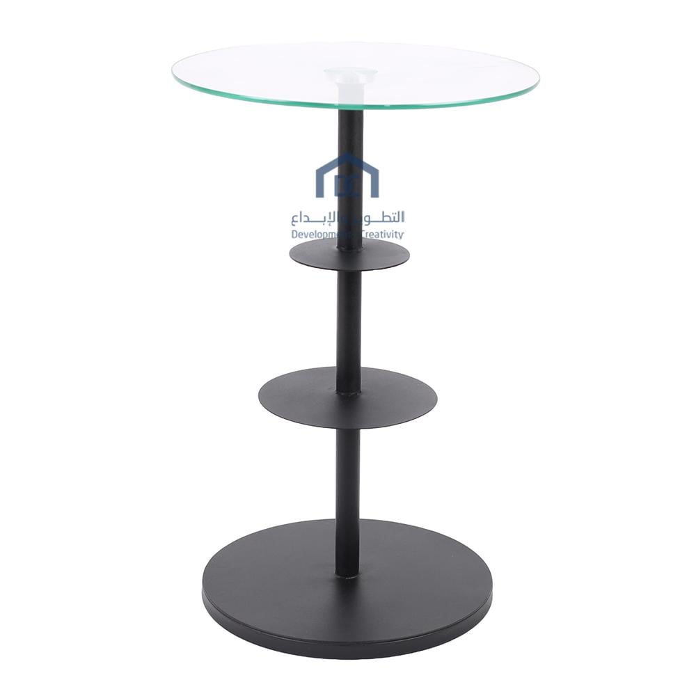 • سطح الطاولة دائري مصنوع من الزجاج الشفاف.