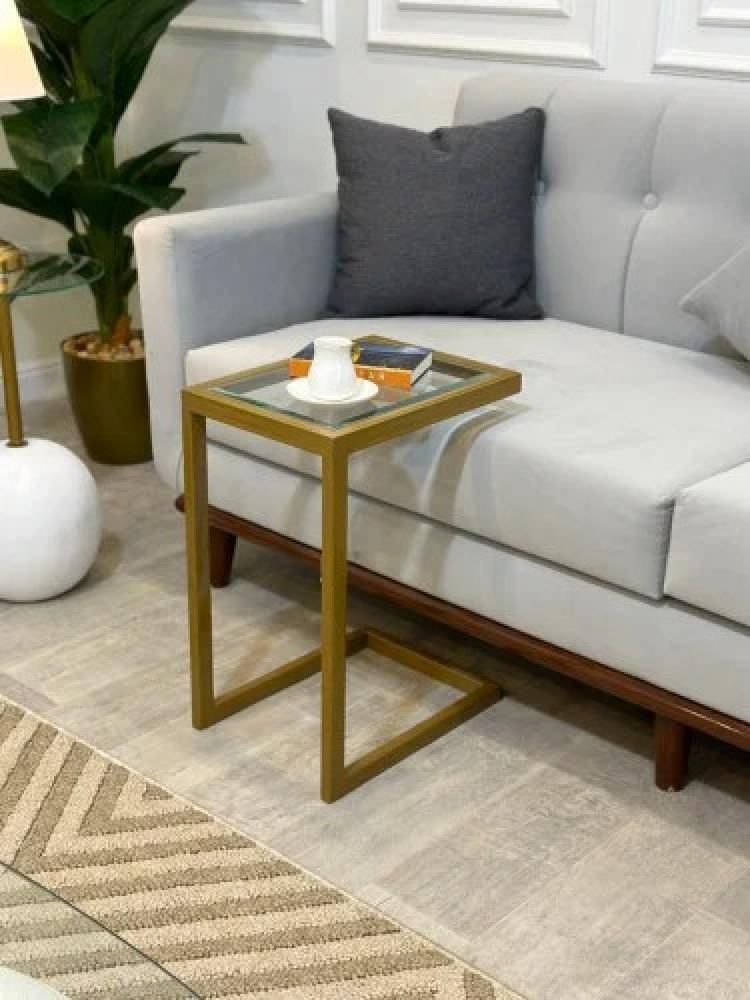 طاولة خدمة معدن 30×40 لون ذهبي سطح زجاج شفاف