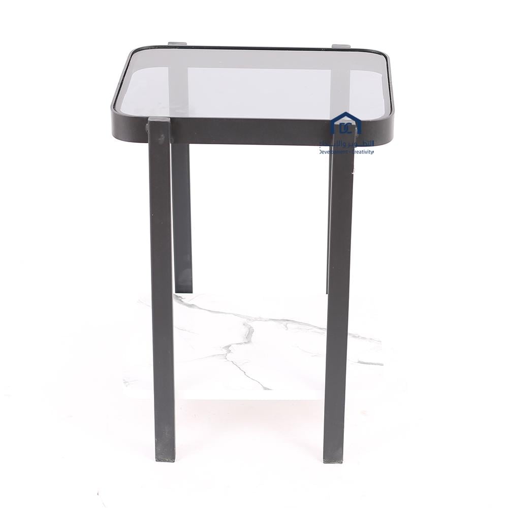طاولة خدمة مفردة دورين خشب ابيض مع رمادي وزجاج اسود ضفاف