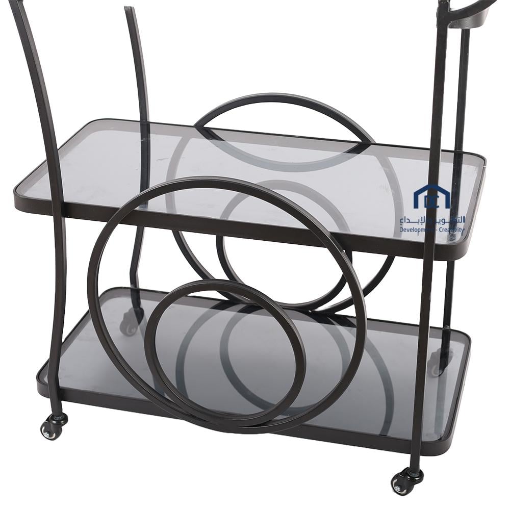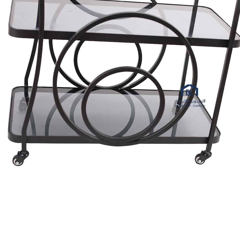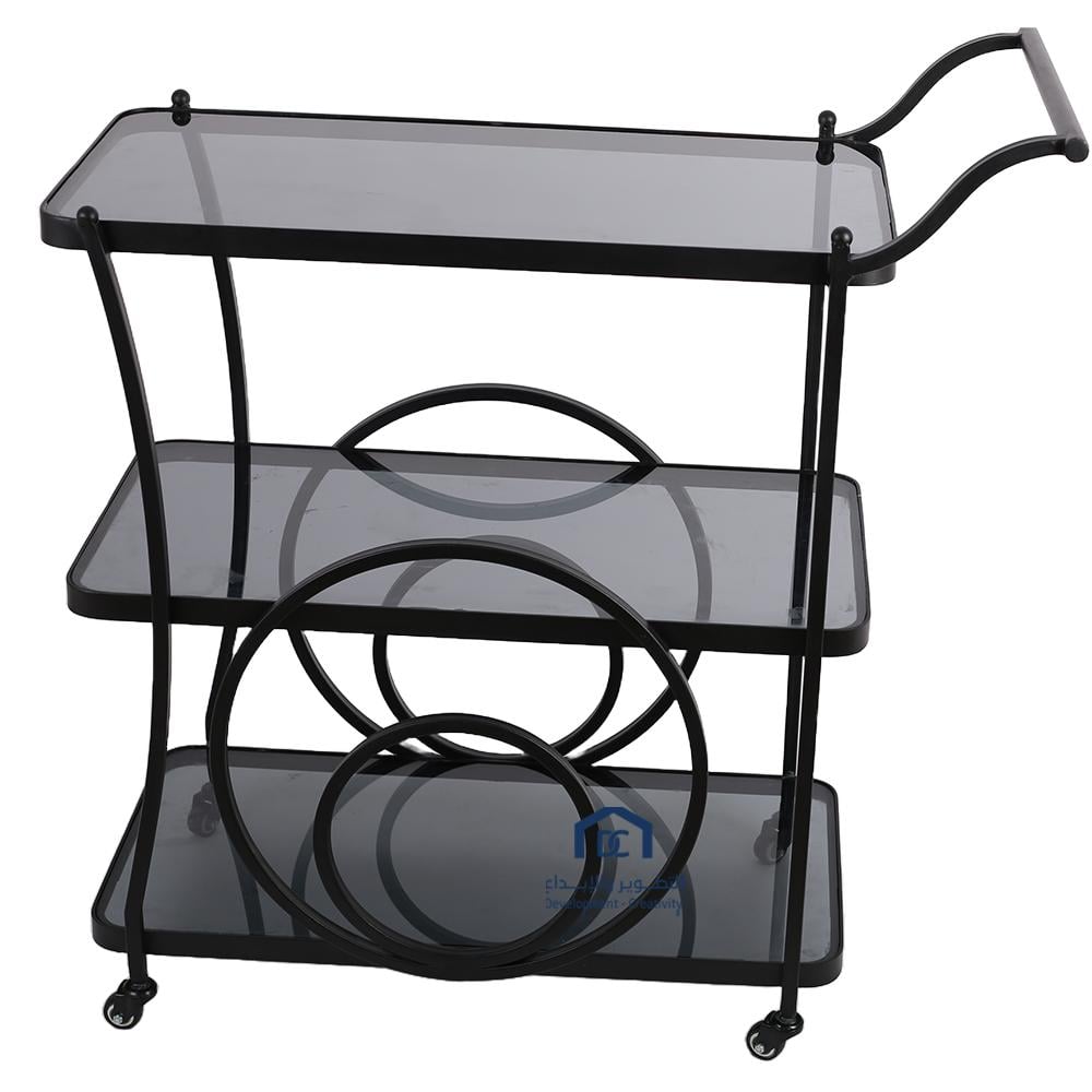 عربية تقديم 3دور قواعد معدن لون اسود مطفي سطه زجاج اسود شفاف