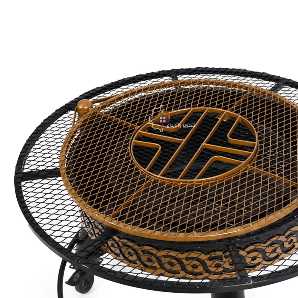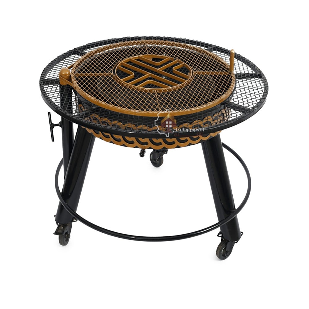 منقل شوي حطب دائري متحرك لون اسود مع ذهبي