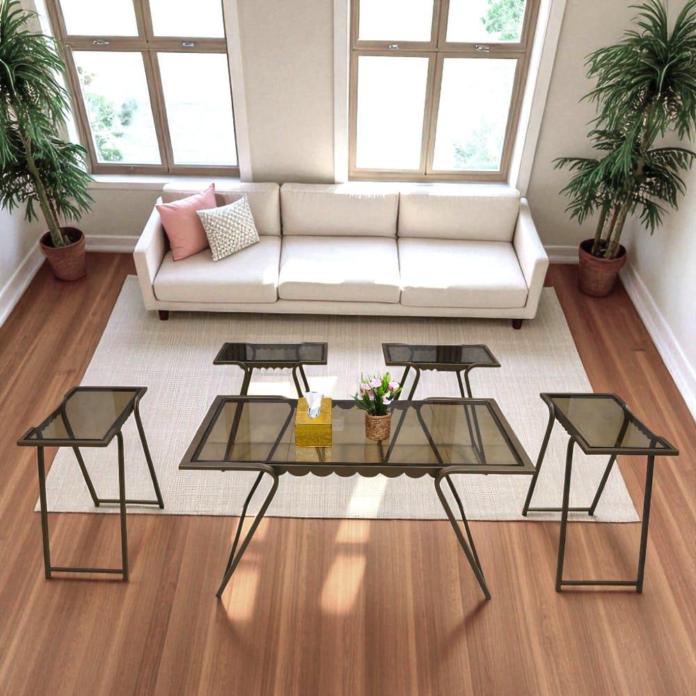 طقم طاولة مع 4 خدمة لون نحاسي قاعدة معدن سطح زجاج بني